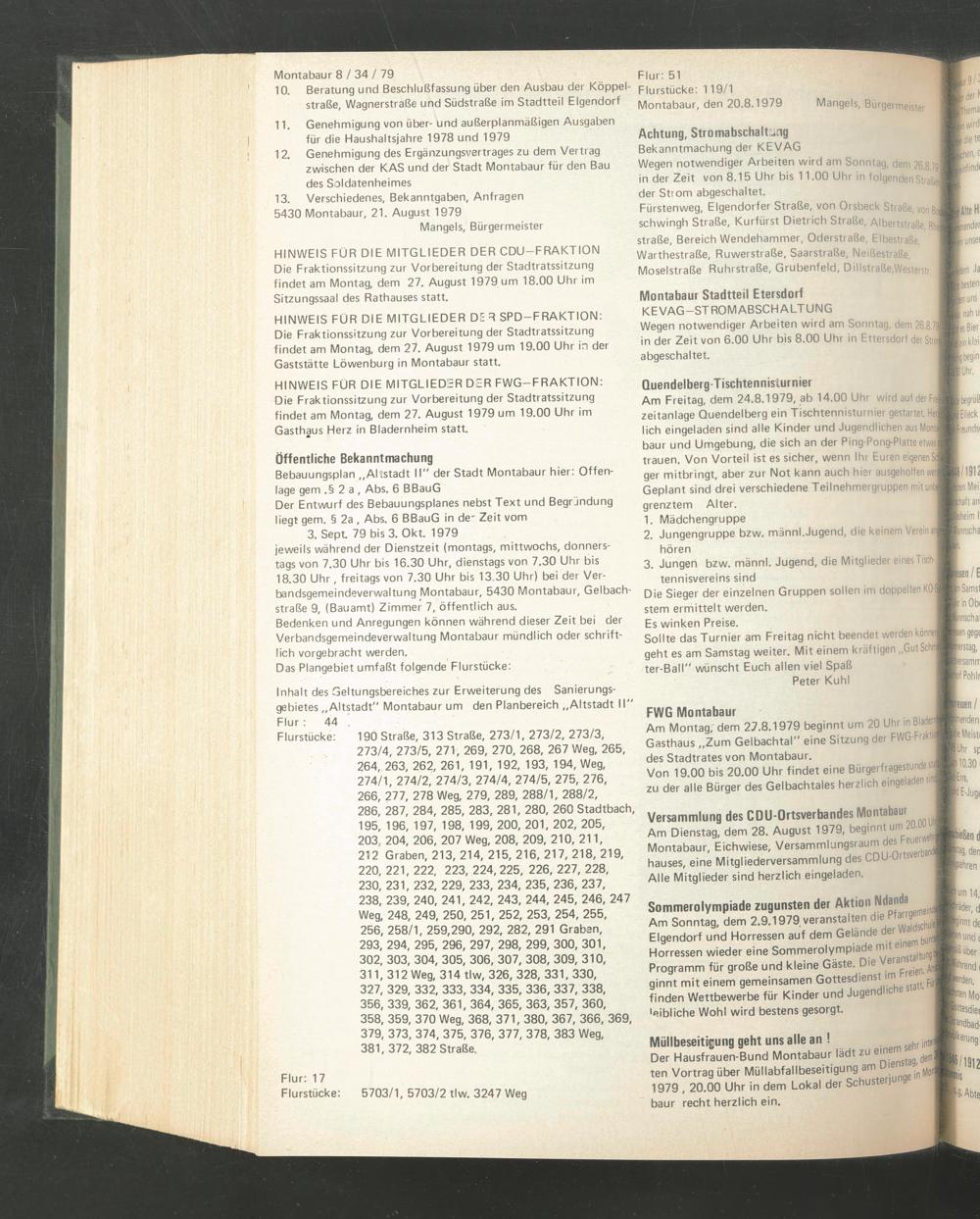 13. Verschiedenes, Bekanntgaben, Anfragen 5430 Montabaur, 21. August 1979