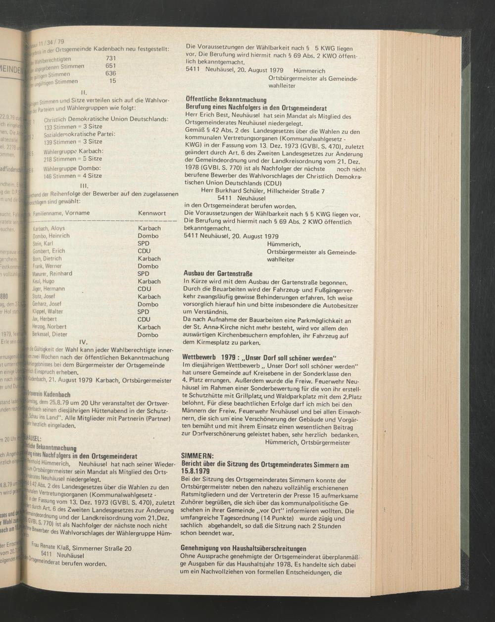 Bericht über die Sitzung des Ortsgemeinderates Simmern am 15.8.1979