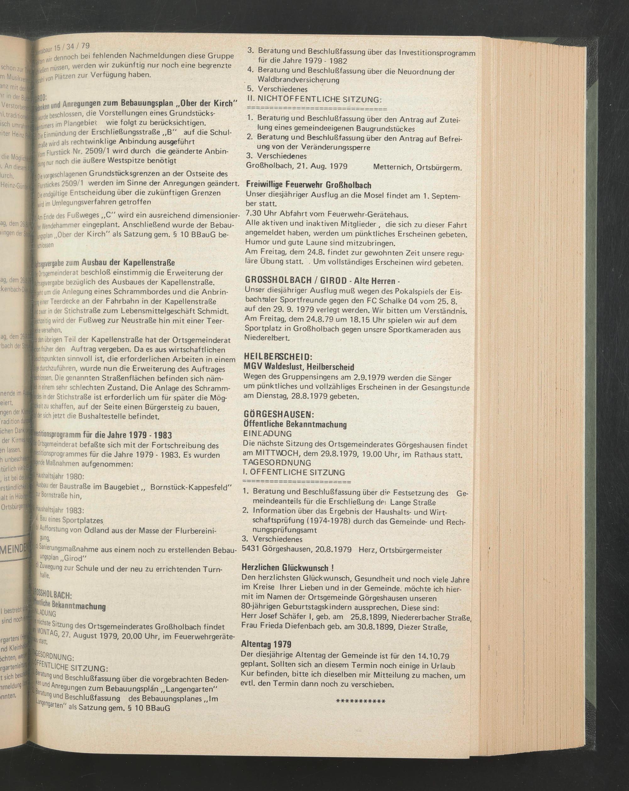 Die nächste Sitzung des Ortsgemeinderates Görgeshausen findet am MITTWOCH, dem 29.8.1979, 19.00 Uhr, im Rathaus statt. TAGESORDNUNG