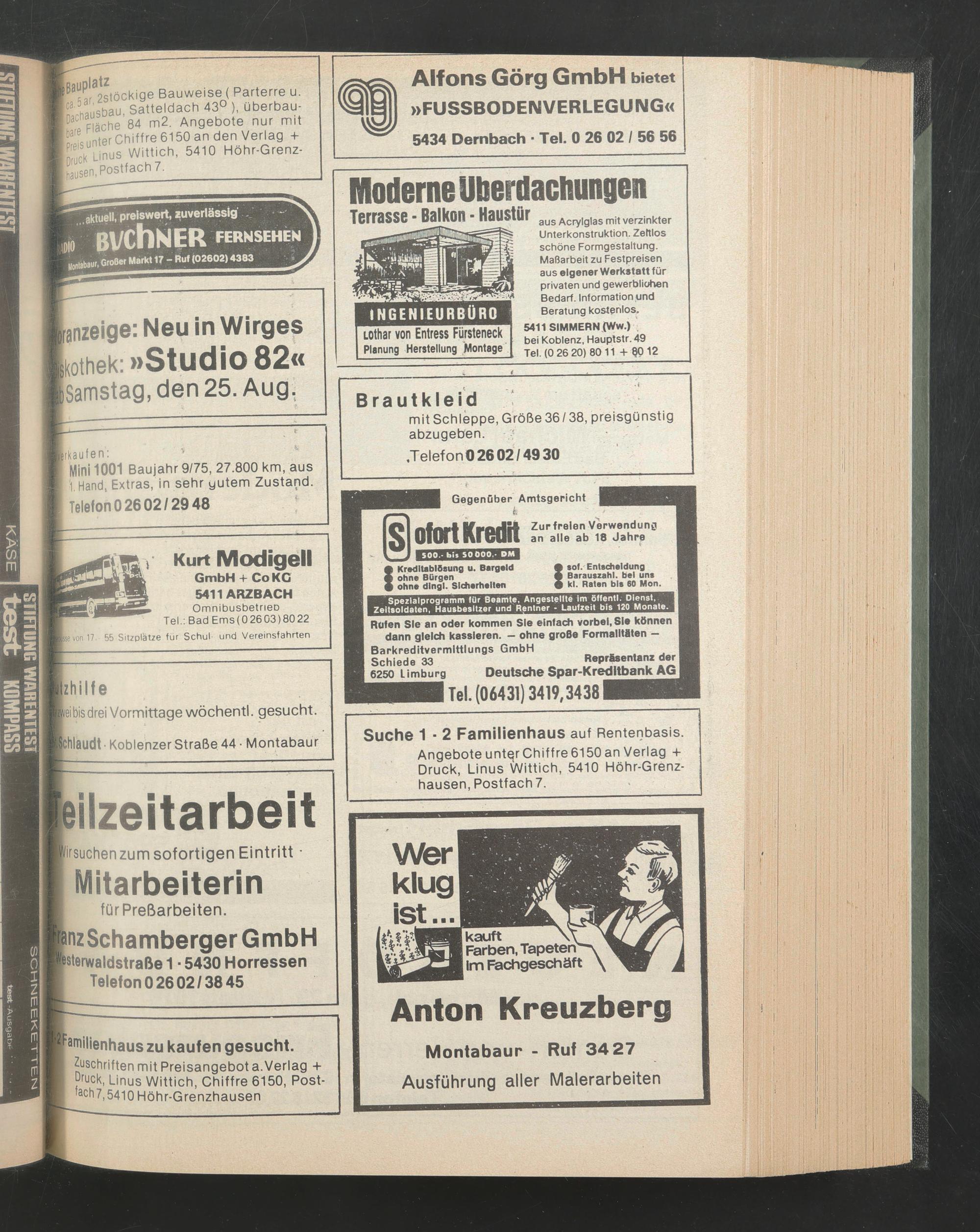 Zuschriften mit Preisangebot a. Verlag + ur uck, Linus Wittich, Chiffre 6150, Posten 7,5410 Höhr-Grenzhausen