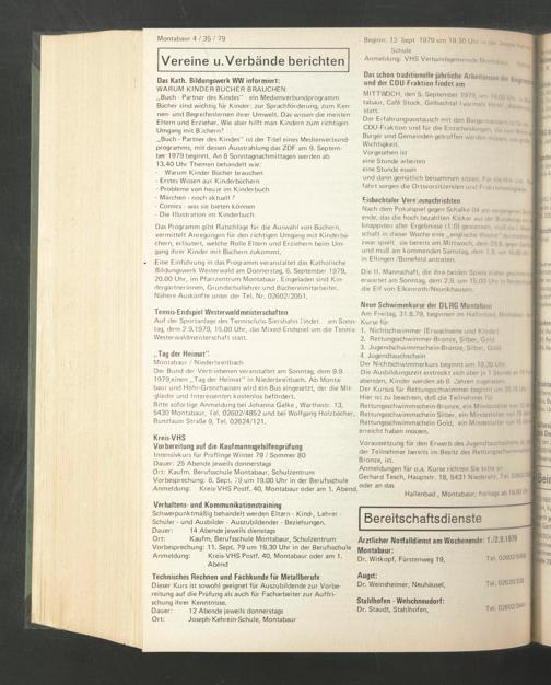 Ärztlicher Notfalldienst am Wochenende: 1./2.9.1979 Montabaur: