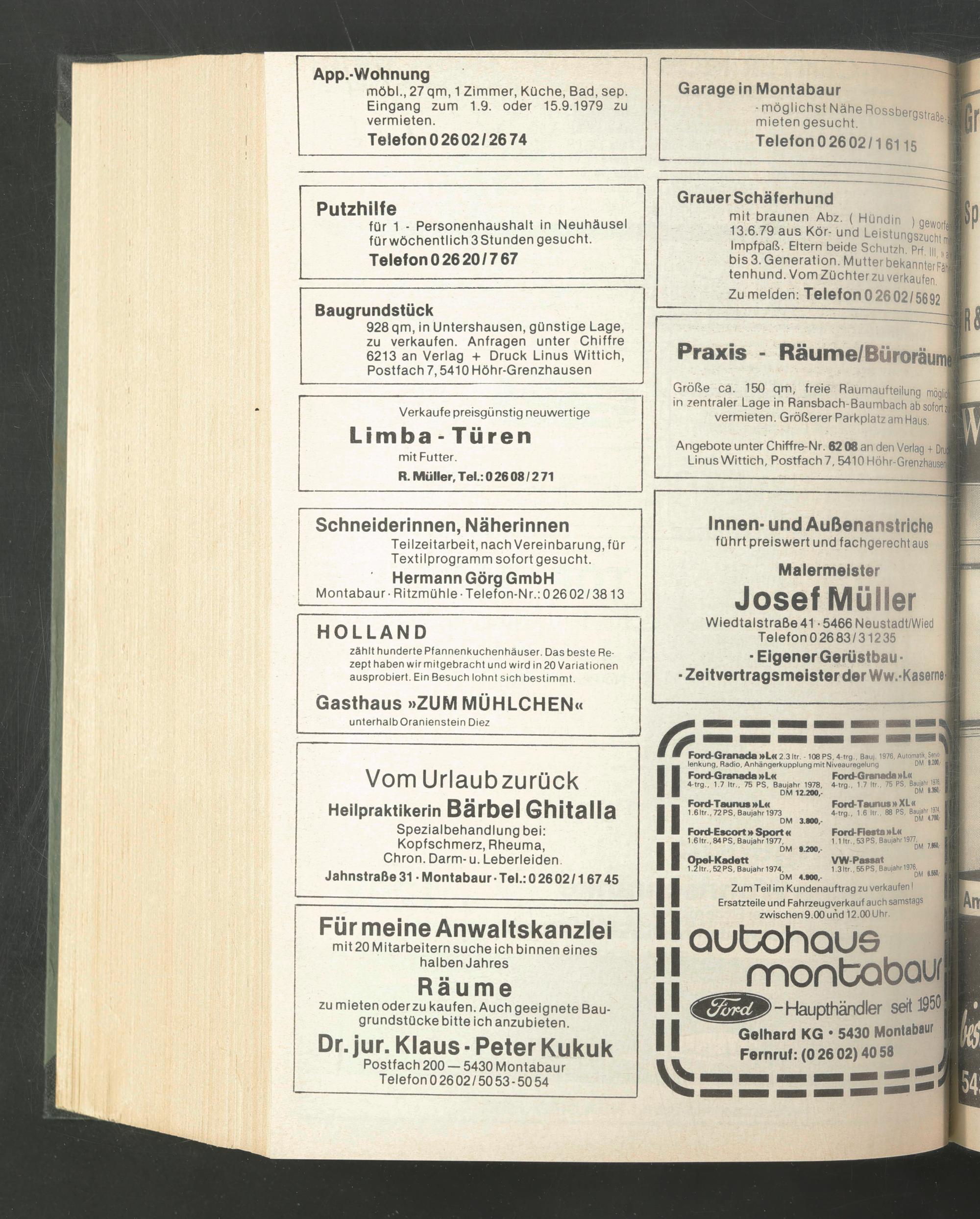 Angebote unter Chiffre-Nr. 62 08 an den Verlag + Dni Linus Wittich, Postfach7,5410 Höhr-Grenzhauseij