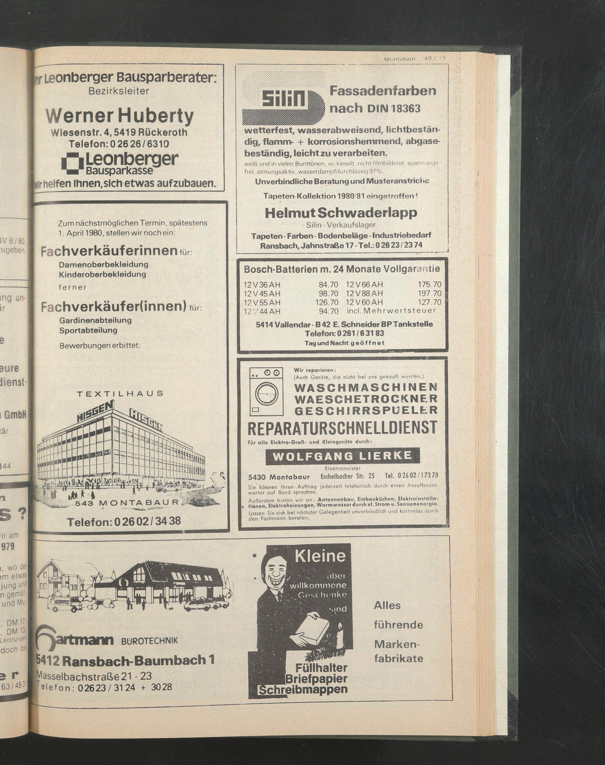 Zum nächstmöglichen Termin, spätestens 1. April 1980, stellen wir noch ein: