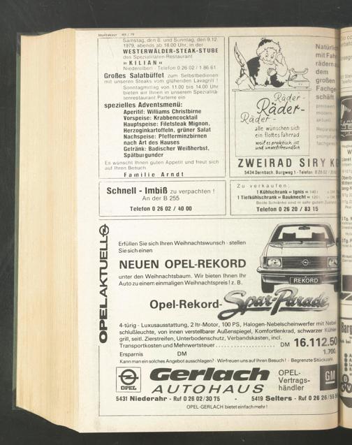 Samstag, den 8. und Sonntag, den 9.12. 1979. abends ab 18.00 Uhr, in der