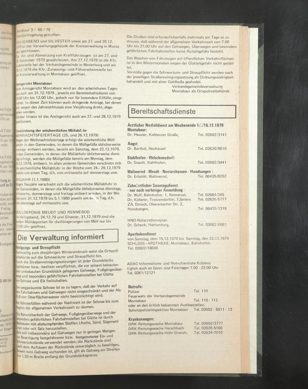 Ärztlicher Notfalldienst am Wochenende 1 §716.12.1979 Montabaur: