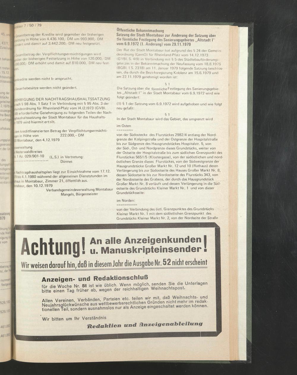 19bis 4.1.1980 während der allgemeinen Dienststunden im ithaus in Montabaur, Zimmer 21, öffentlich aus. mtabaur, den 10.12.1979