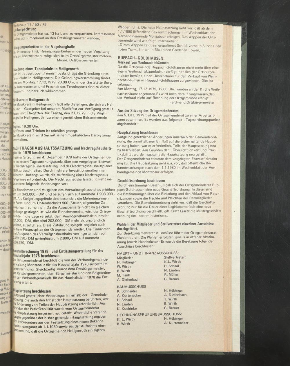 Am 5. Dez. 1979 trat der Ortsgemeinderat zu einer Arbeitssitzung zusammen. Es wurden u.a. folgende Tagesordnungspunkte abgehandelt :