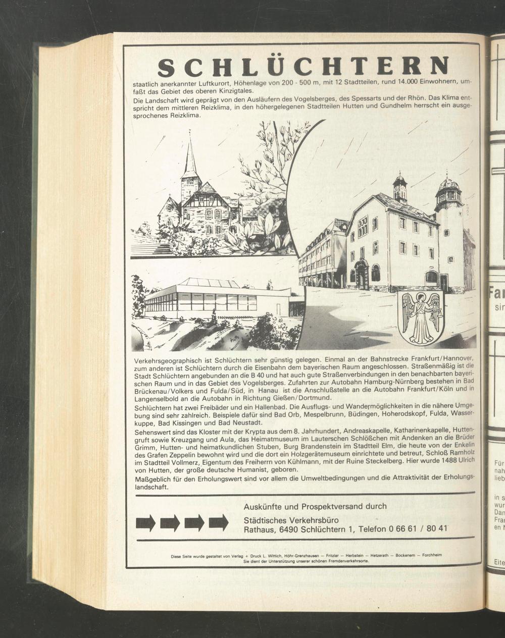 Auskünfte und Prospektversand durch Städtisches Verkehrsbüro