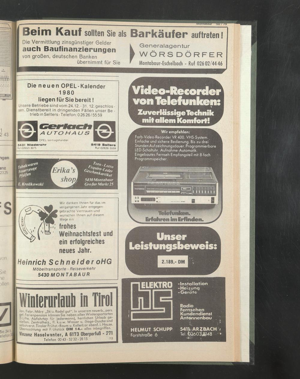 Unsere Betriebe sind vom 24.12.-31.12.geschlos sen. Dienstbereit in dringenden Fällen unser Be ■ trieb in Selters-Telefon: 026 26/55 59