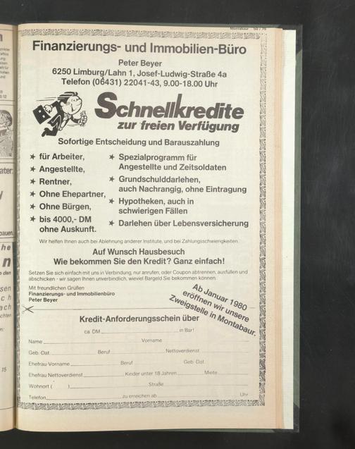 * bis 4000,- DM ohne Auskunft.