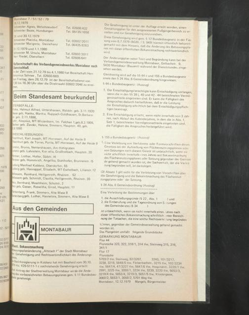 Gleichzeitig wird auf die §§ 44 c und 155 a Bundesbaugesetz sowie den § 24 Abs. 6 Gemeindeordnung hingewiesen.