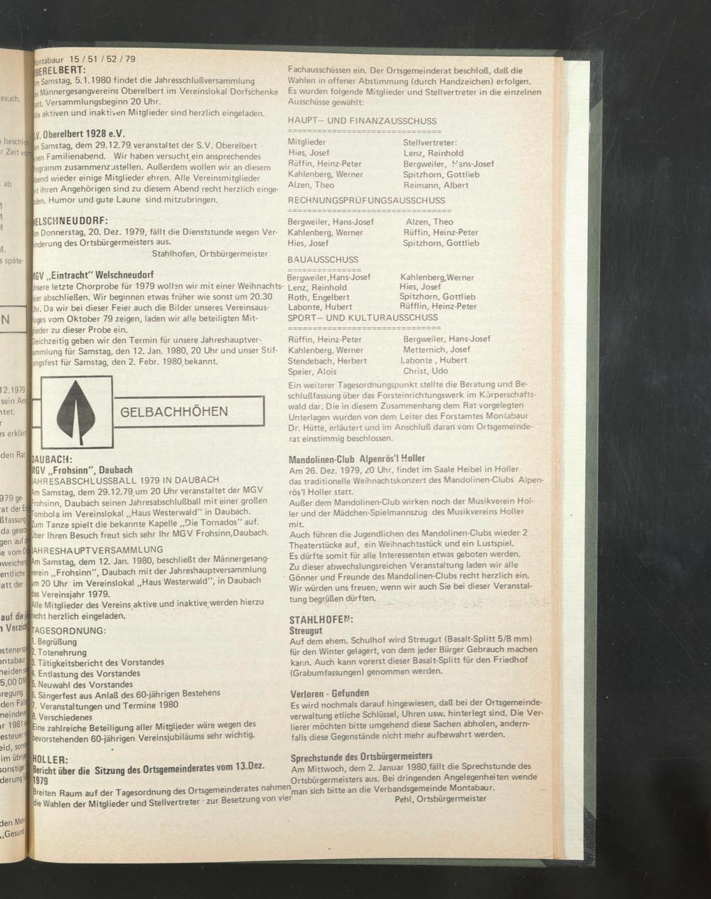 - Herein „Frohsinn", Daubach mit der Jahreshauptversammlung wn 20 Uhr im Vereinslokal „Haus Westerwald", in Daubach Jas Vereinsjahr 1979.