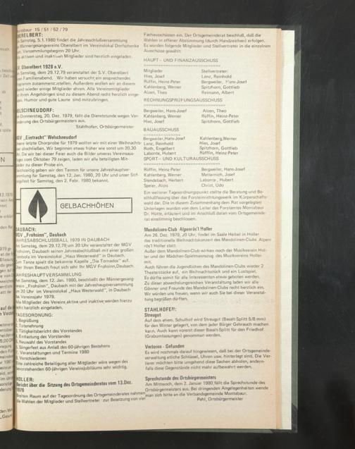 L Samstag, 5.1.1980 findet die Jahresschlußversammlung L Männergesangvereins Oberelbert im Vereinslokal Dorfschenke Ijtt. Versammlungsbeginn 20 Uhr.