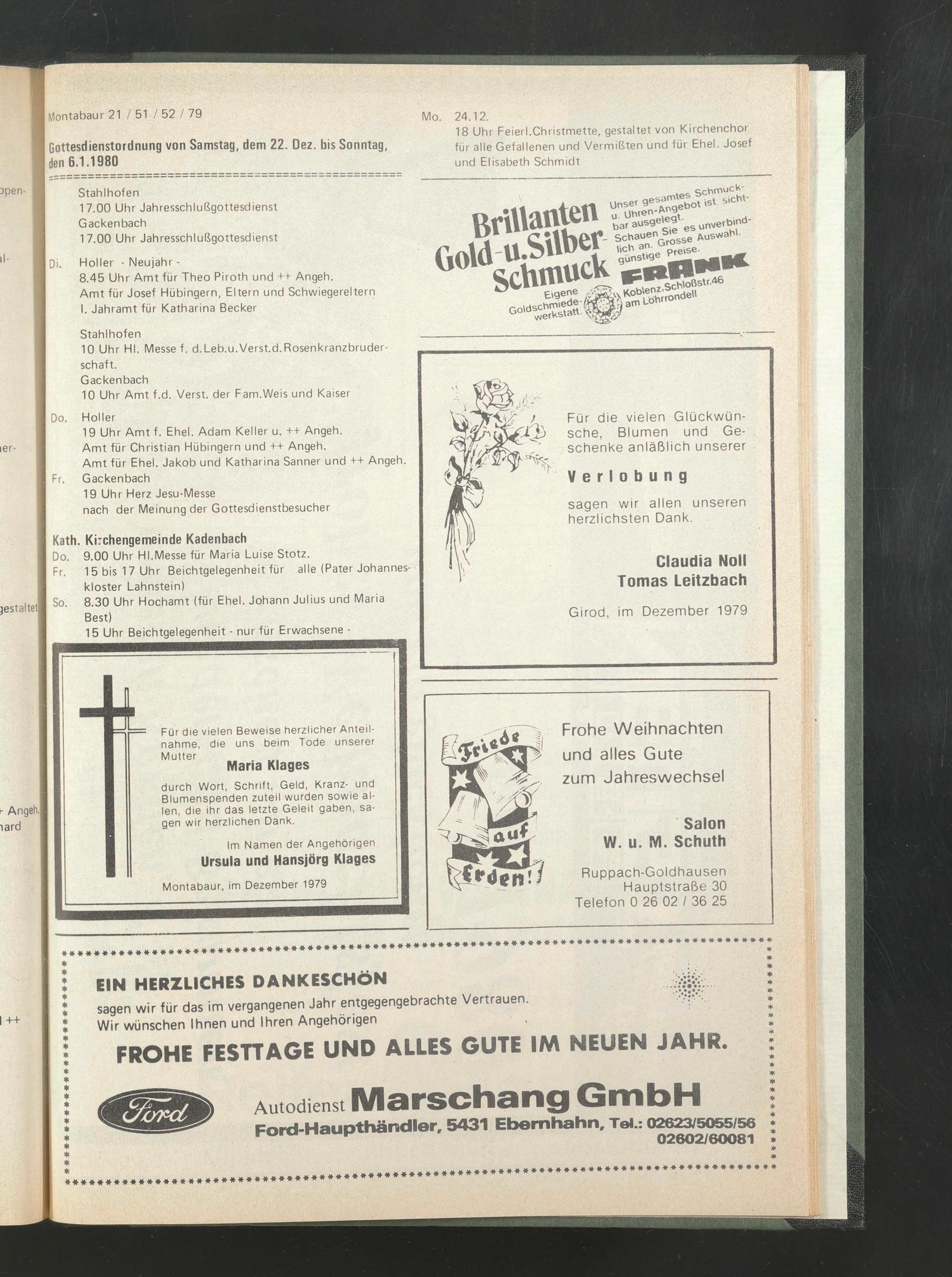 Gottesdienstordnung von Samstag, dem 22. Dez. bis Sonntag,