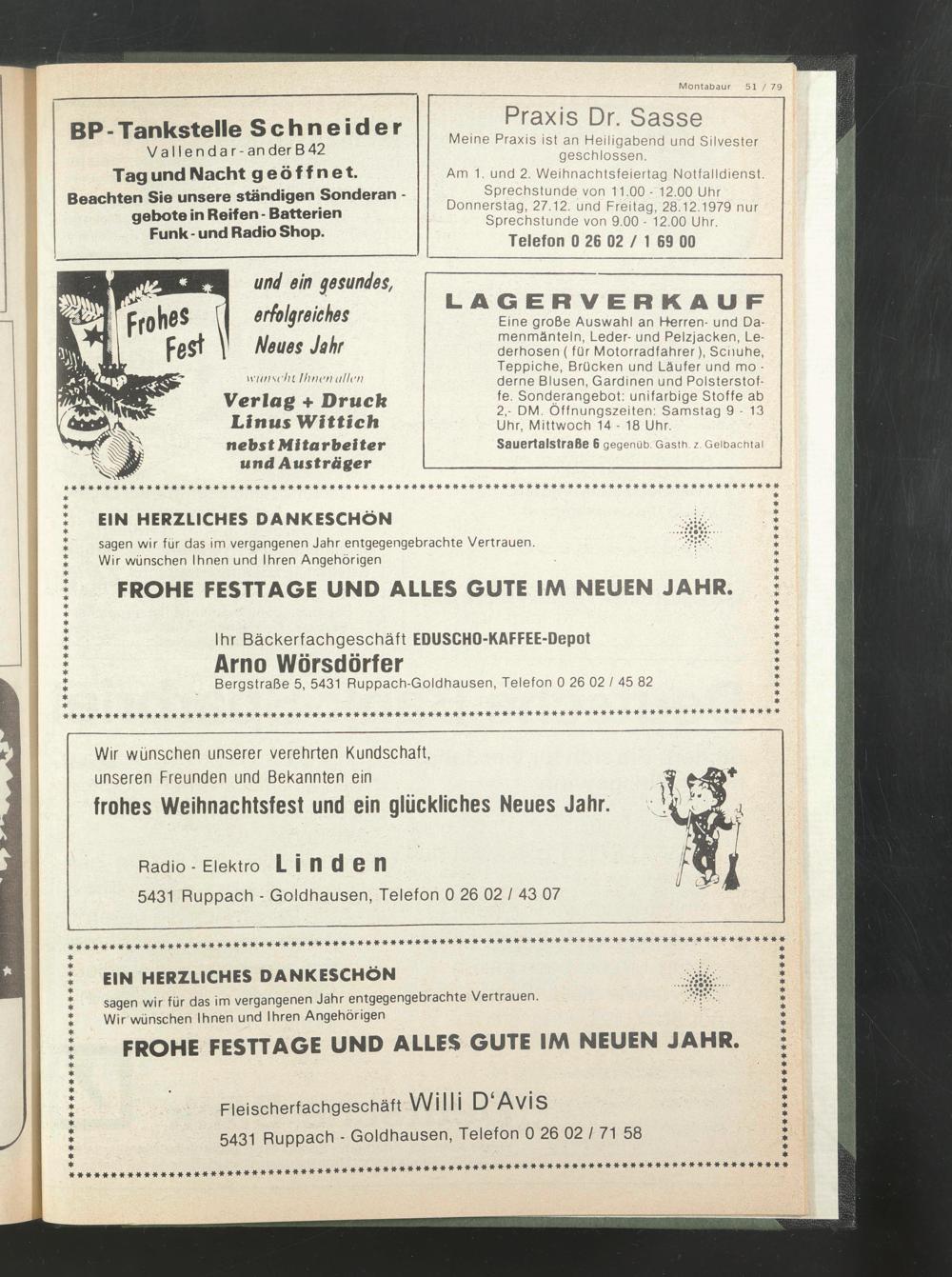 Sprechstunde von 11.00 - 12.00 Uhr Donnerstag, 27.12. und Freitag, 28.12.1979 nur Sprechstunde von 9.00 - 12.00 Uhr.