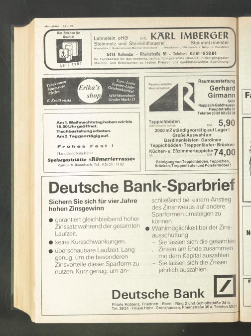 Filiale Koblenz, Friedrich - Ebert - Ring 2 und Schloßstraße 34 b, Tel. 39 51 • Filiale Höhr - Grenzhausen, Rheinstraße 36 a, Telefon 30 01