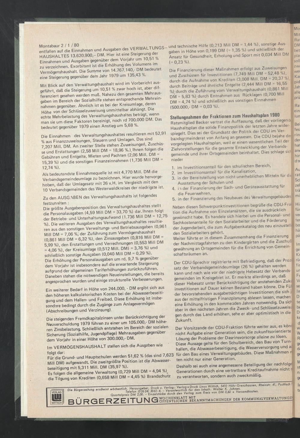 Stellungnahmen der Fraktionen zum Haushaltsplan 1980
