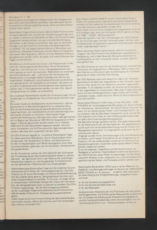 Damit dieser auch für seine Tätigkeit eine angemessene finanzielle Grundlage habe, seien auf Antrag der CDU-Fraktion im Haushalt 1980 15.000,- DM bereitgestellt.