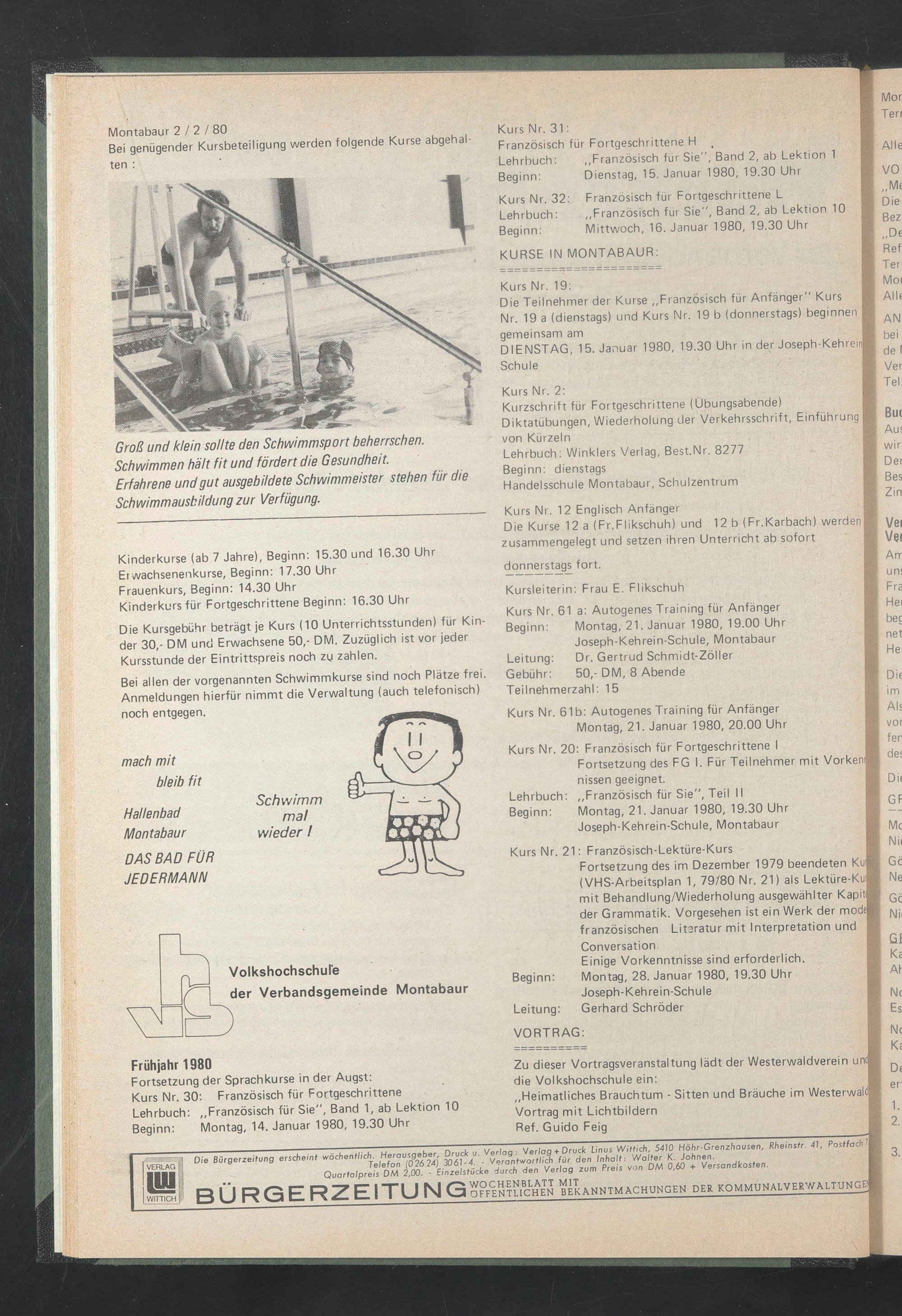 Kurs Nr. 30: Französisch für Fortgeschrittene Lehrbuch: „Französisch für Sie", Band 1, ab Lektion 10 Beginn: Montag, 14. Januar 1980, 19.30 Uhr