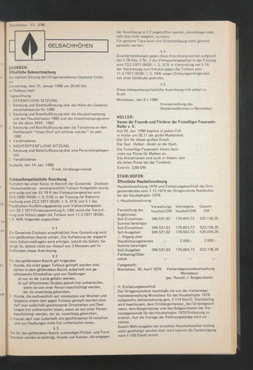 Montabaur, 20. April 1979 Verbandsgemeindeverwaltung
