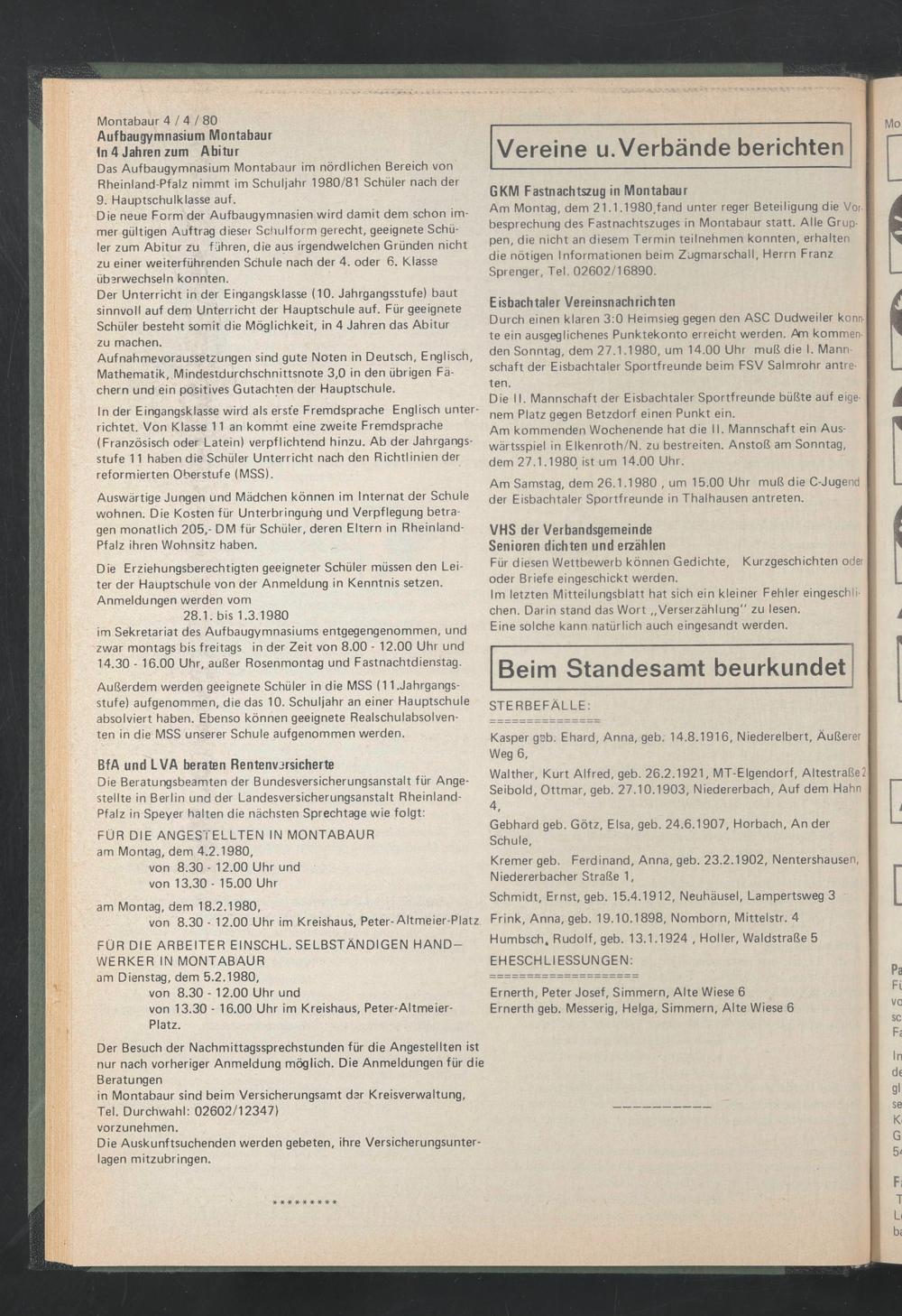 FÜR DIE ANGESTELLTEN IN MONTABAUR am Montag, dem 4.2.1980,