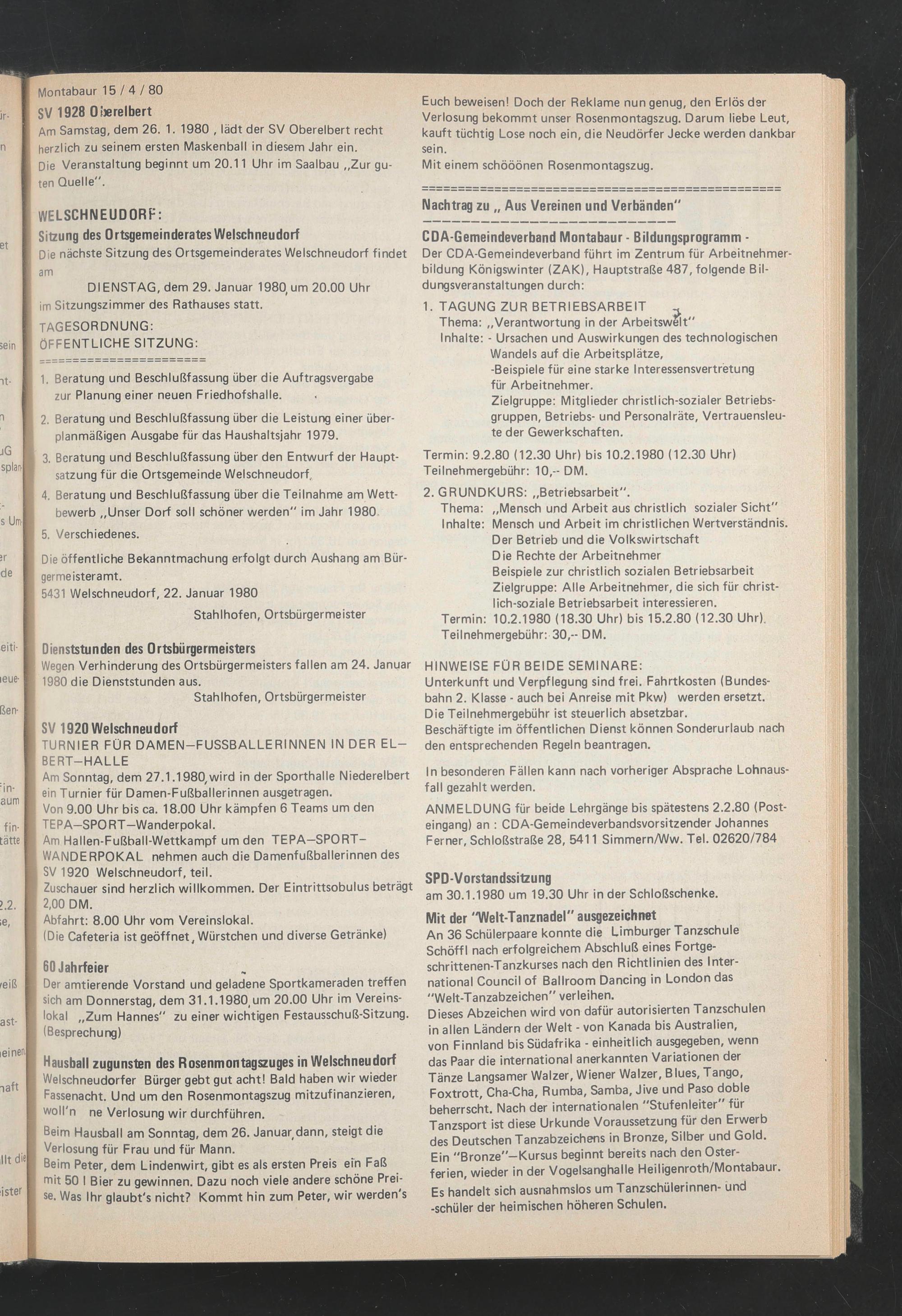 Termin: 9.2.80 (12.30 Uhr) bis 10.2.1980 (12.30 Uhr) Teilnehmergebühr: 10,- DM.