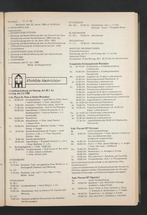 Gottesdienstordnung von Samstag, den 26.1. bis Sonntag, den 2.2.1980