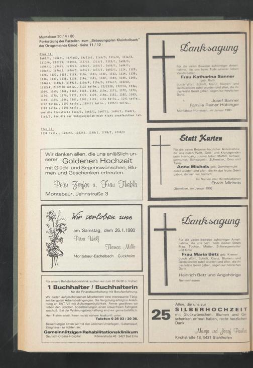 Frau Maria Betz geb. Kremer durch Wort, Schrift, Kranz, Blumen- und Geldspenden zuteil wurden und allen, die ihr das letzte Geleit gaben, sagen wir herzlichen Dank.