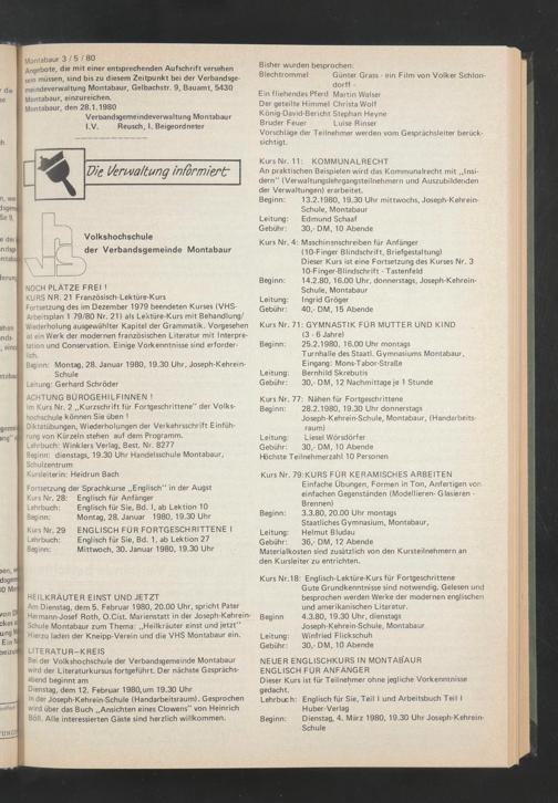 Beginn: 13.2.1980, 19.30 Uhr mittwochs, Joseph-Kehrein-