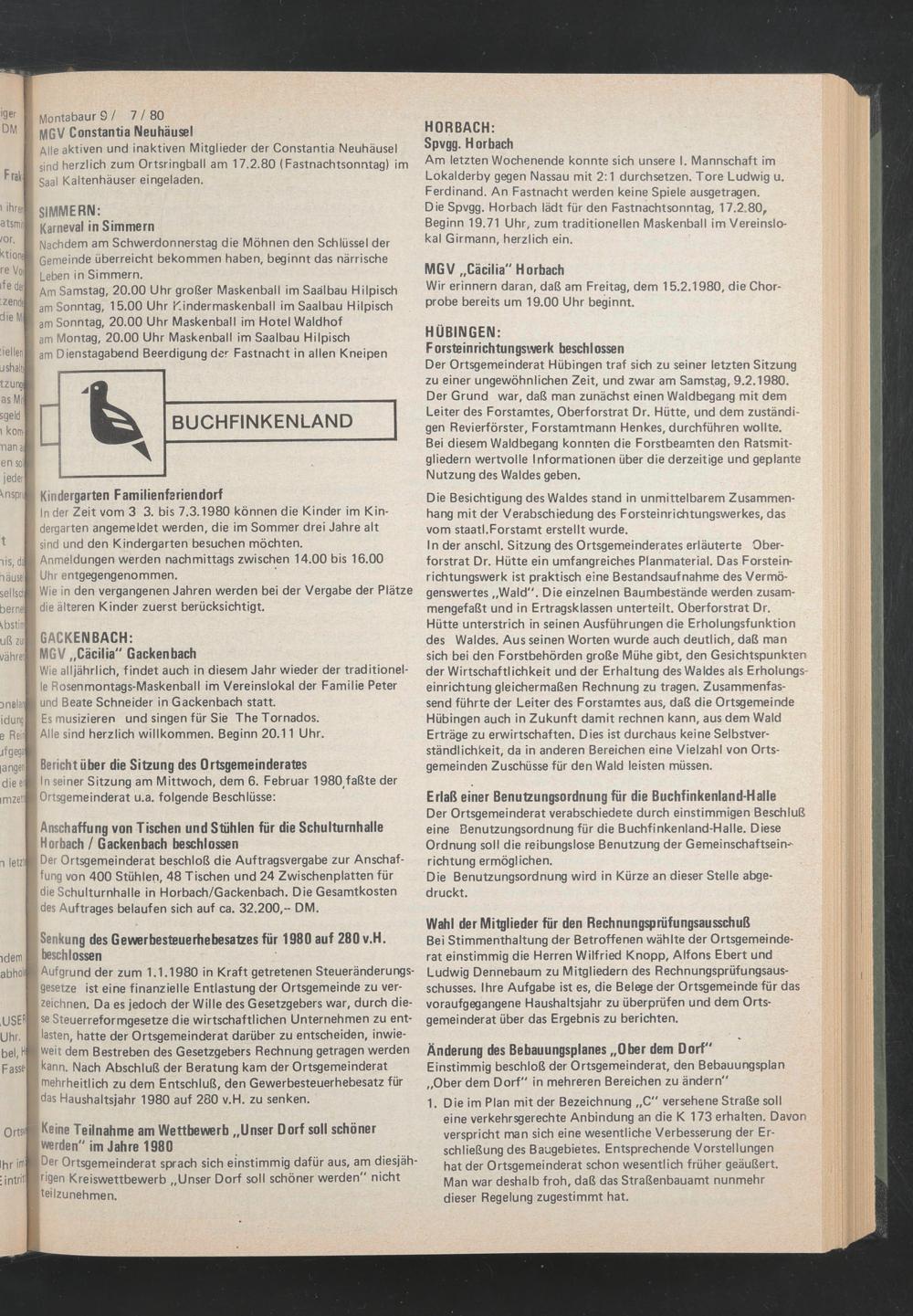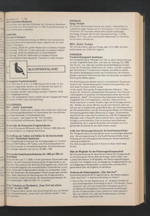 In seiner Sitzung am Mittwoch, dem 6. Februar 1980 # faßte der Ortsgemeinderat u.a. folgende Beschlüsse: