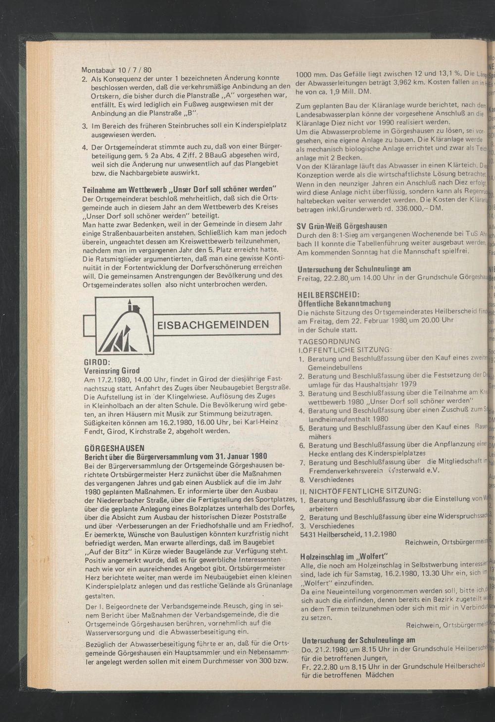 3. Verschiedenes 5431 Heilberscheid, 11.2.1980