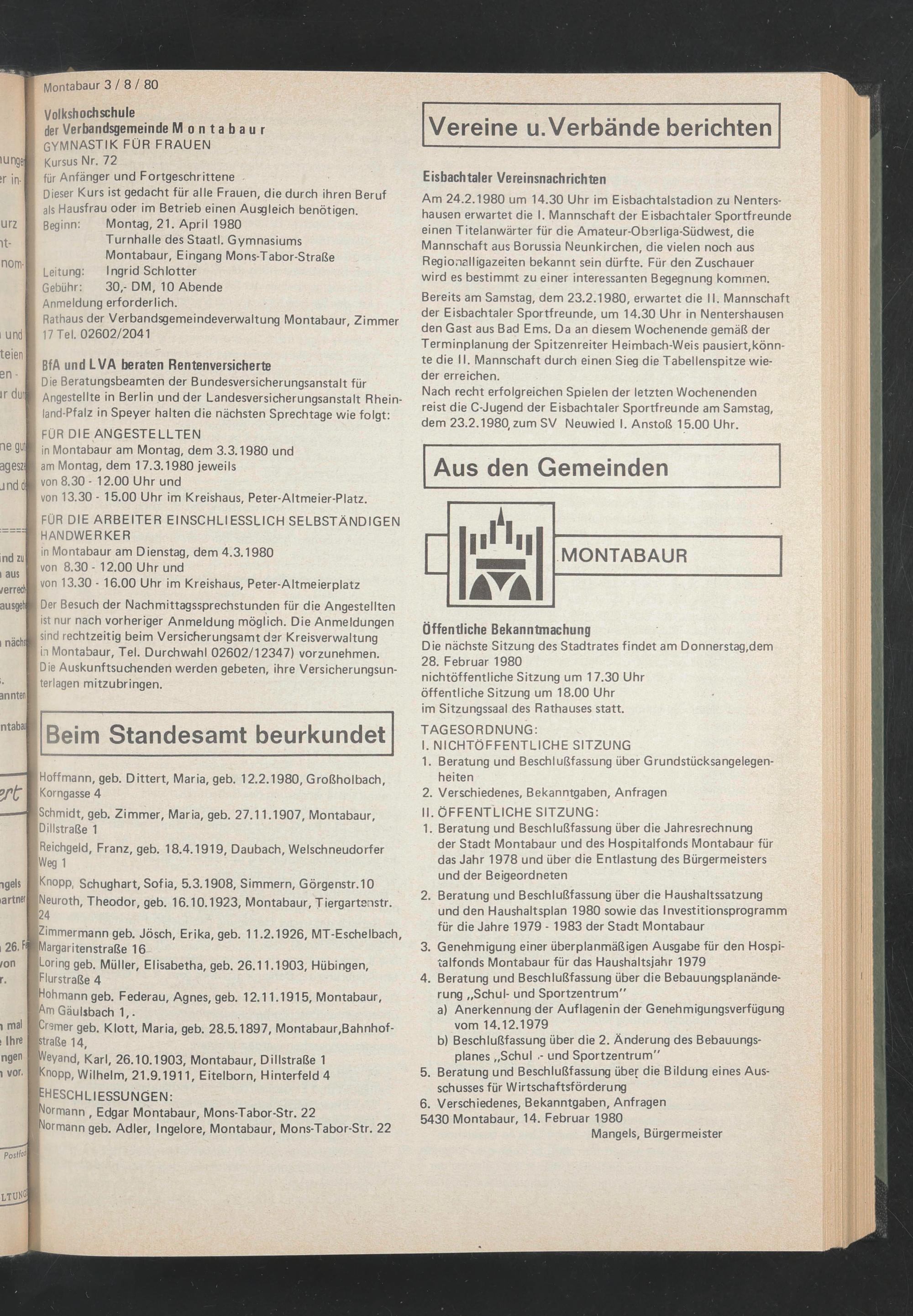 Beratung und Beschlußfassung über die Bildung eines Ausschusses für Wirtschaftsförderung 6. Verschiedenes, Bekanntgaben, Anfragen 5430 Montabaur, 14. Februar 1980