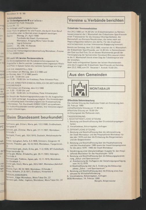 in Montabaur am Dienstag, dem 4.3.1980 I von 8.30 - 12.00 Uhr und