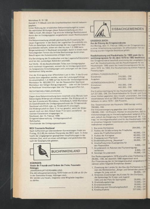Am Montag, dem 11. Februar 1980,trat der Ortsgemeinderat zu einer Arbeitssitzung zusammen. Im öffentlichen Teil der Sitzung wurden folgende Beschlüsse gefaßt: