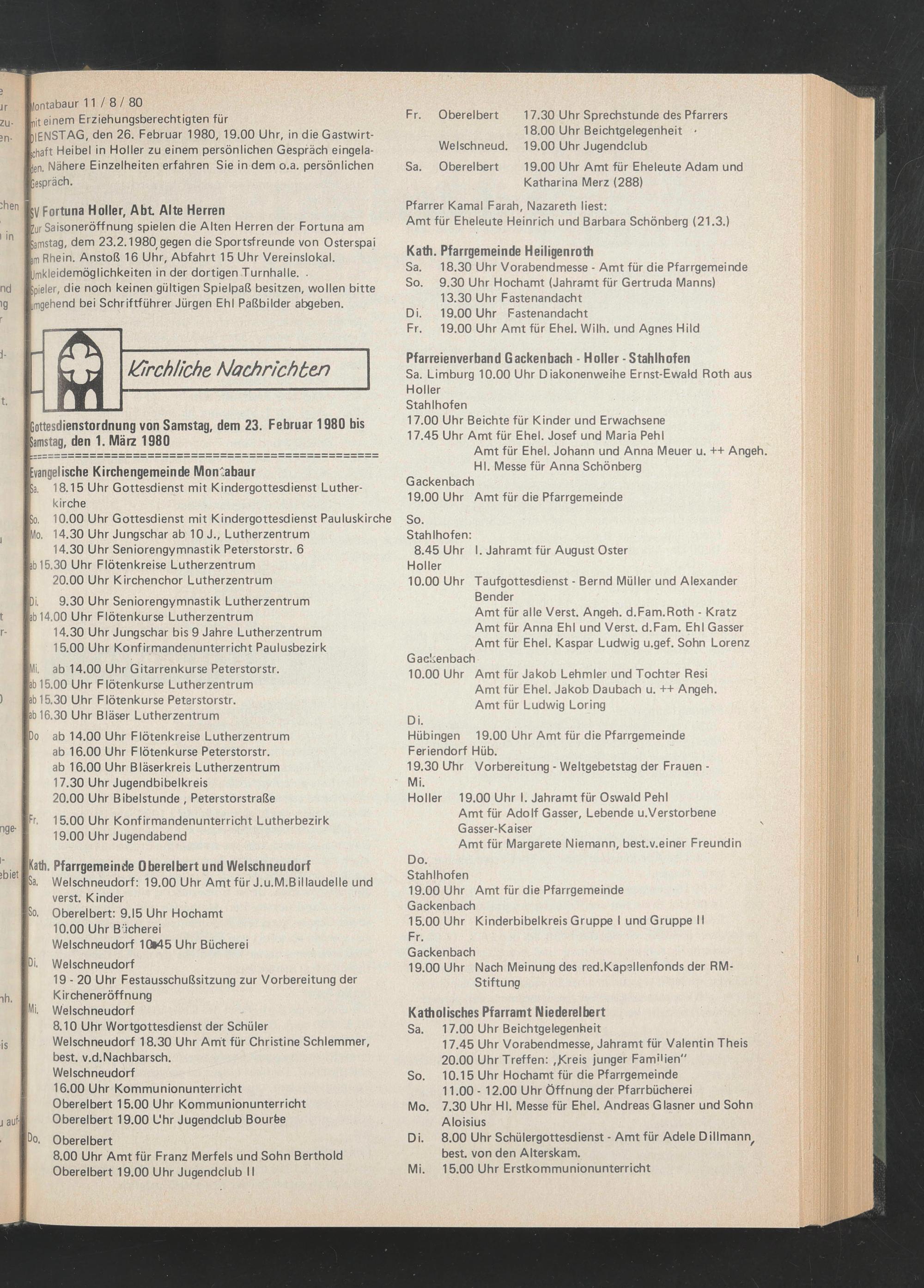 jottesdienstordnung von Samstag, dem 23. Februar 1980 bis amstag, den 1. März 1980
