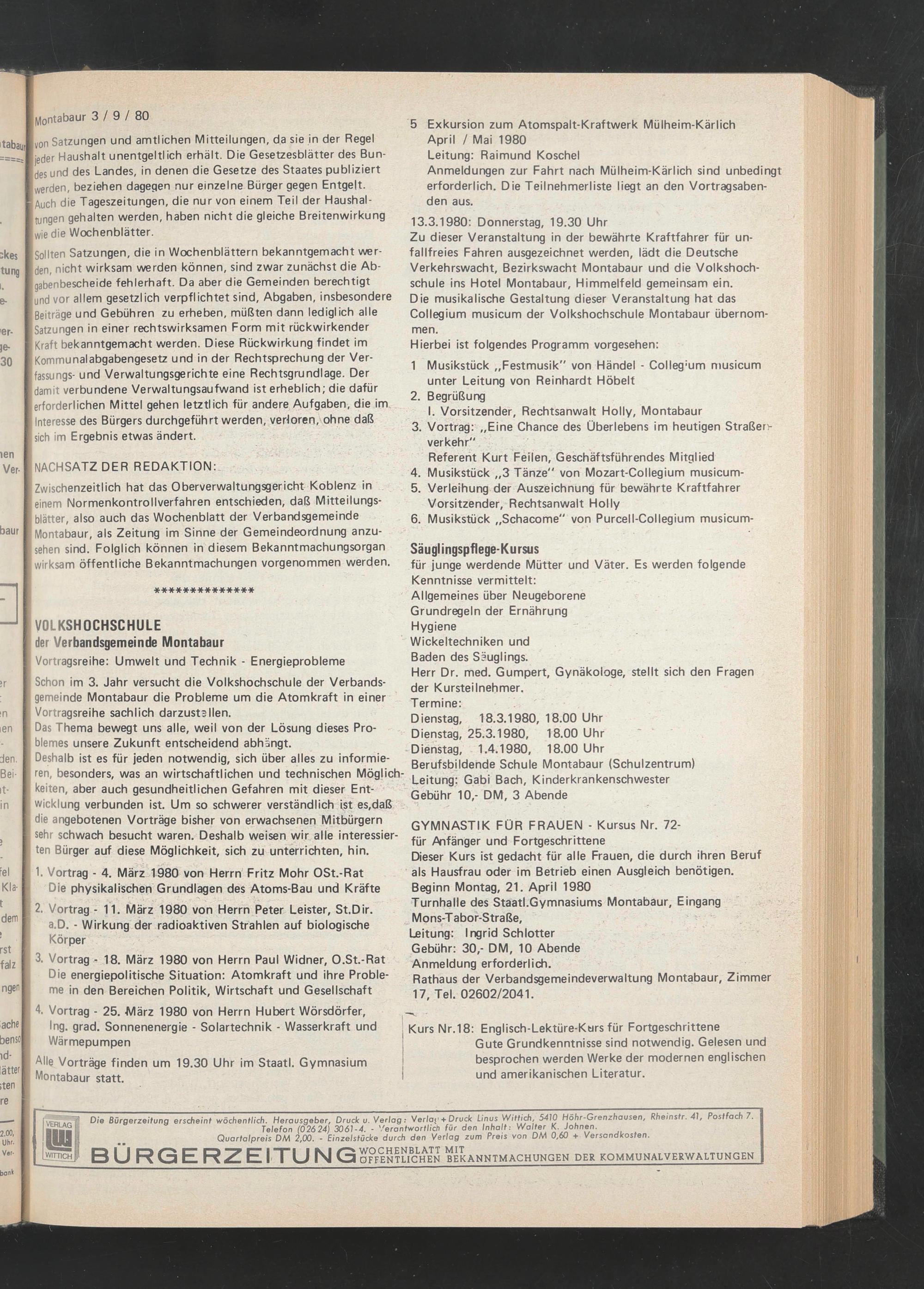 Die Burgerzeitung erscheint wöchentlich. Herausgeber, Druck u. Verlag: Verlag* Druck Linus Wittich, 5410 Höhr-Grenzhausen, Rhemsfr. 41, Postfach 7.