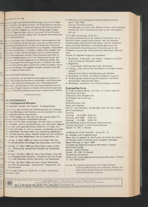 Deshalb ist es für jeden notwendig, sich über alles zu informieren, besonders, was an wirtschaftlichen und technischen Möglichkeiten, aber auch gesundheitlichen Gefahren mit dieser Entwicklung verbunden ist. Um so schwerer verständlich ist es.daß die angebotenen Vorträge bisher von erwachsenen Mitbürgern sehr schwach besucht waren. Deshalb weisen wir alle interessierten Bürger auf diese Möglichkeit, sich zu unterrichten, hin.