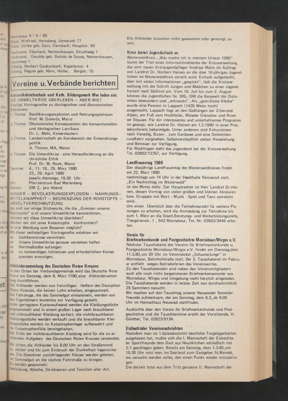 ln den Orten der Verbandsgemeinde wird das Deutsche Rote Kreuz am Samstag, dem 8. März 1980, eine Altkleidersammlung durchführen.