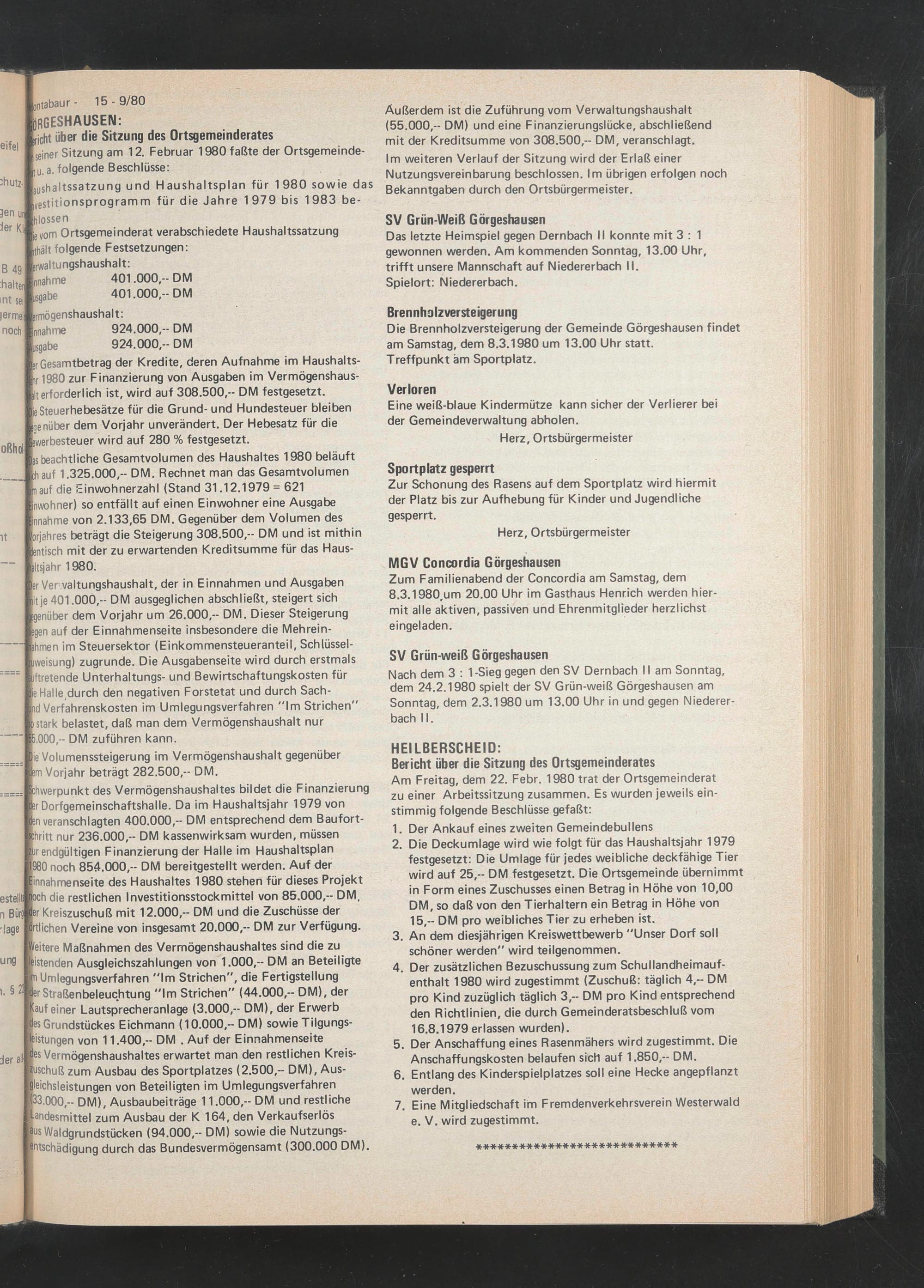seiner Sitzung am 12. Februar 1980 faßte der Ortsgemeinde- |tu.a. folgende Beschlüsse: