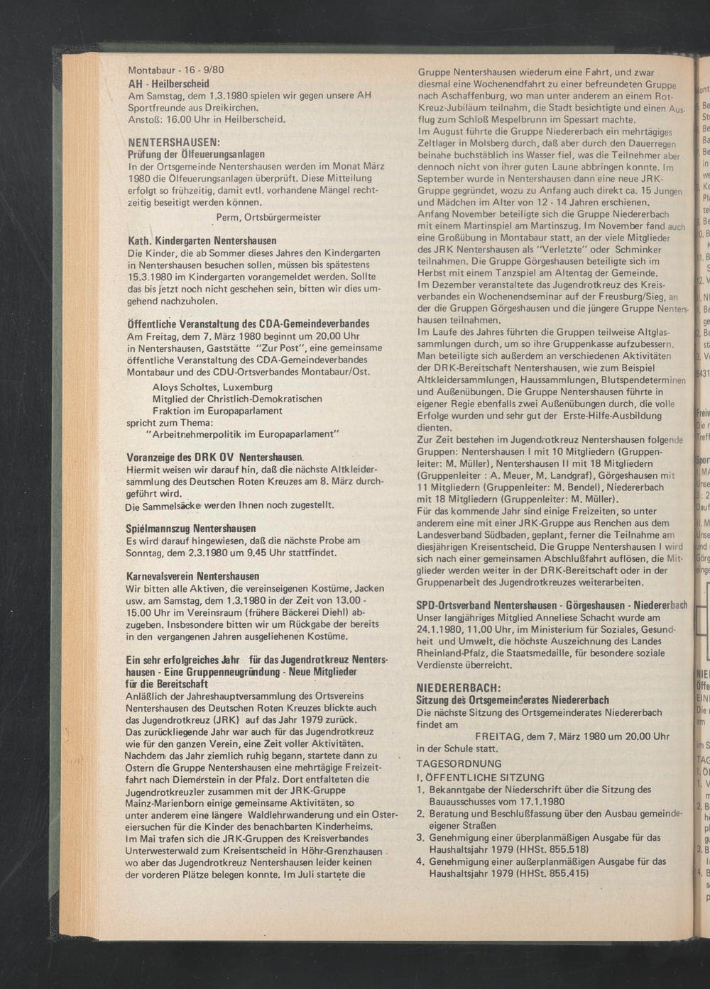 Am Freitag, dem 7. März 1980 beginnt um 20.00 Uhr in Nentershausen, Gaststätte "Zur Post", eine gemeinsame öffentliche Veranstaltung des CDA-Gemeindeverbandes Montabaur und des CDU-Ortsverbandes Montabaur/Ost.