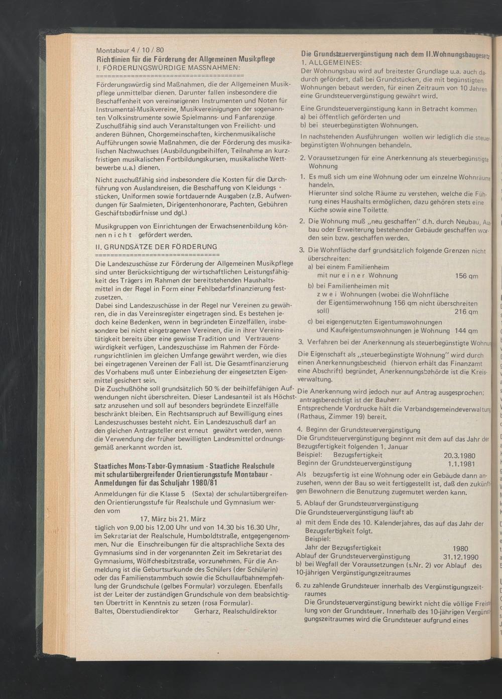 Staatliches Mons-Tabor-Gymnasium - Staatliche Realschule mitschulartübergreifender Orientierungsstufe Montabaur - Anmeldungen für das Schuljahr 1980/81