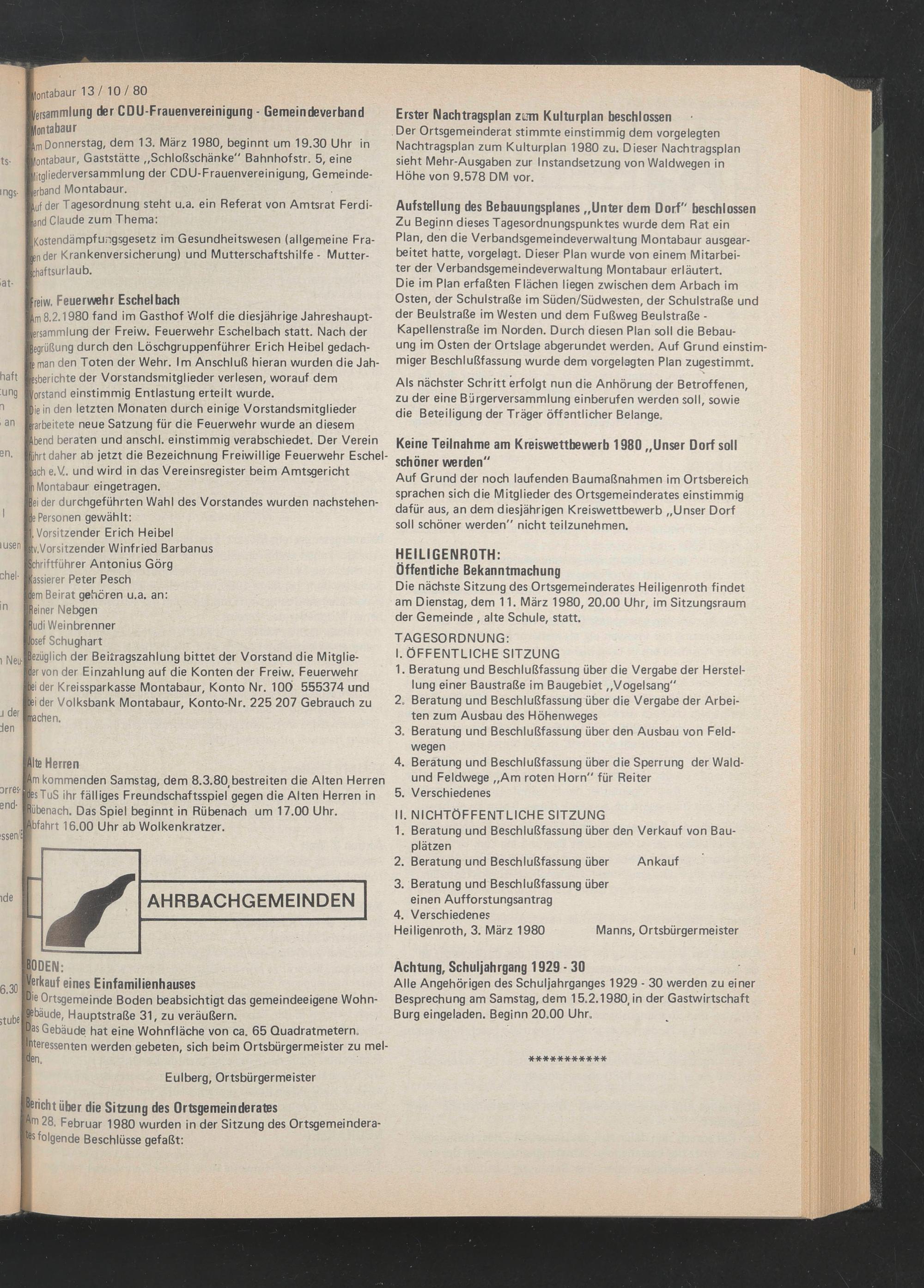 Bericht über die Sitzung des Ortsgemeinderates m 28. Februar 1980 wurden in der Sitzung des Ortsgemeindera- ® s folgende Beschlüsse gefaßt: