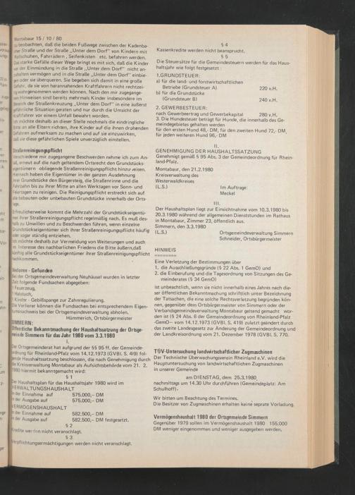 Vermögenshaushalt 1980 der Ortsgemeinde Simmern