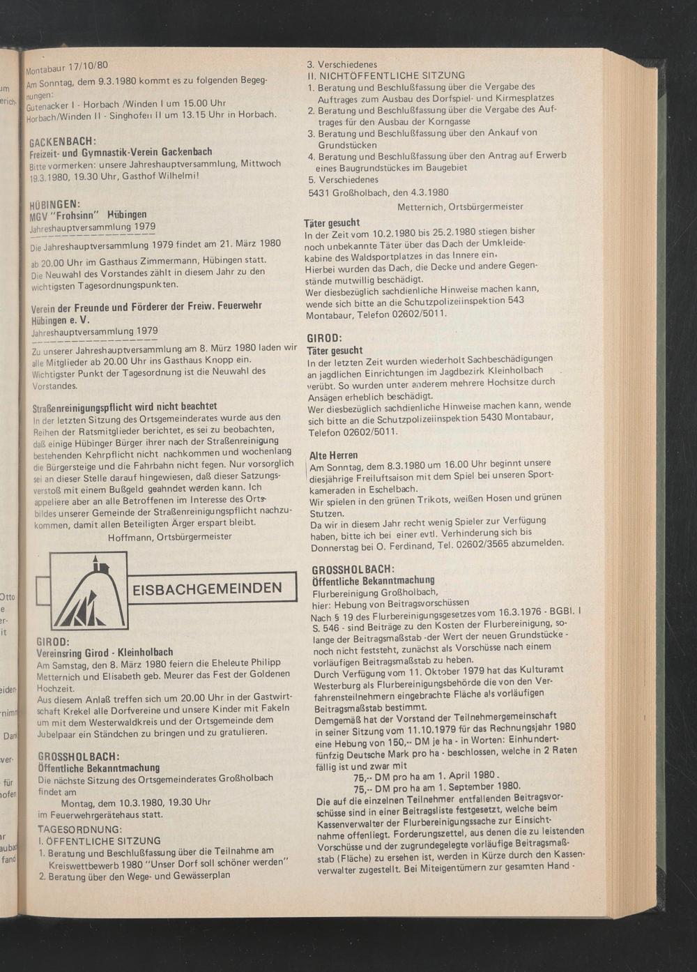 Montag, dem 10.3.1980, 19.30 Uhr im Feuerwehrgerätehaus statt.