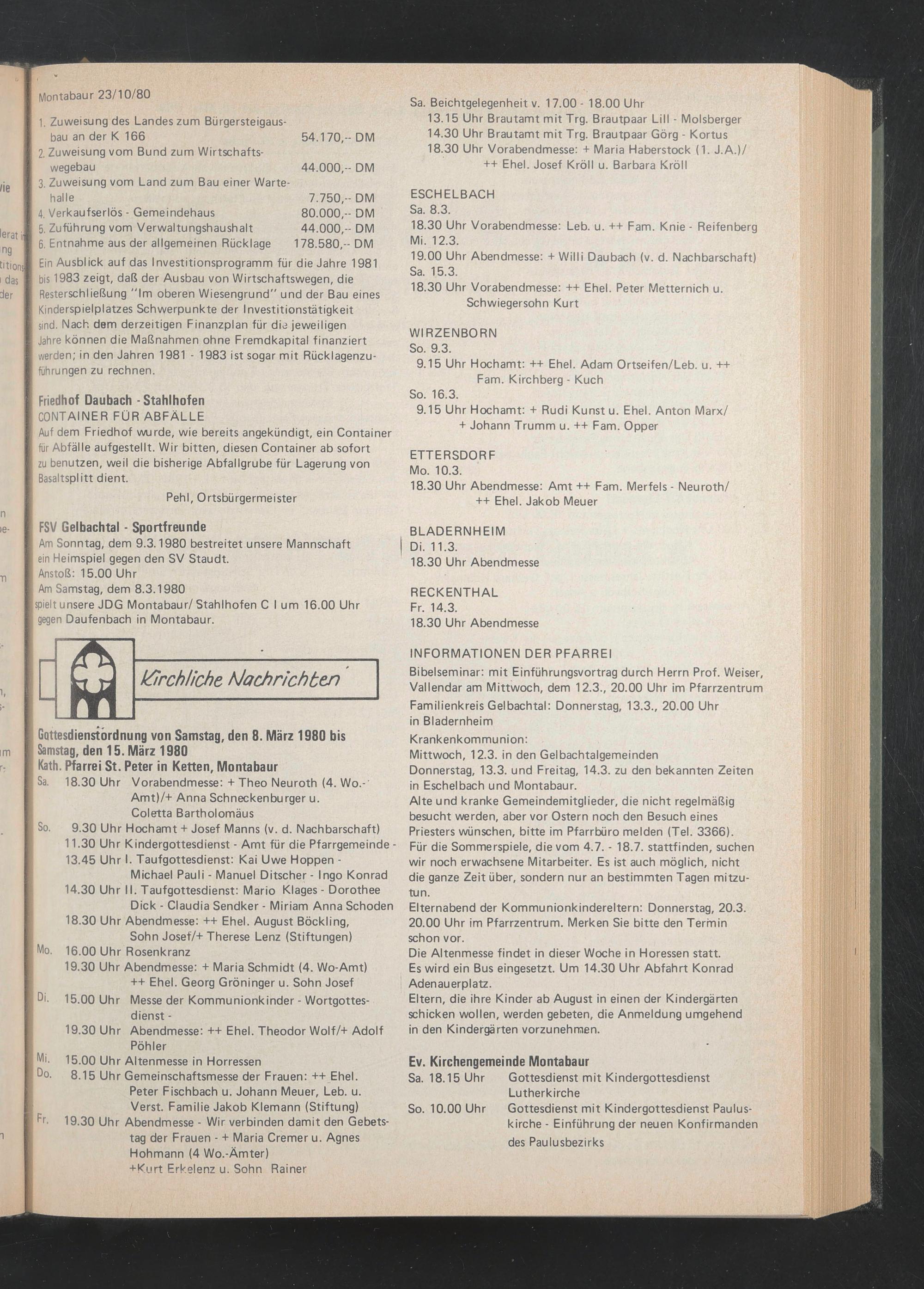 Gattesdienstördnung von Samstag, den 8. März 1980 bis