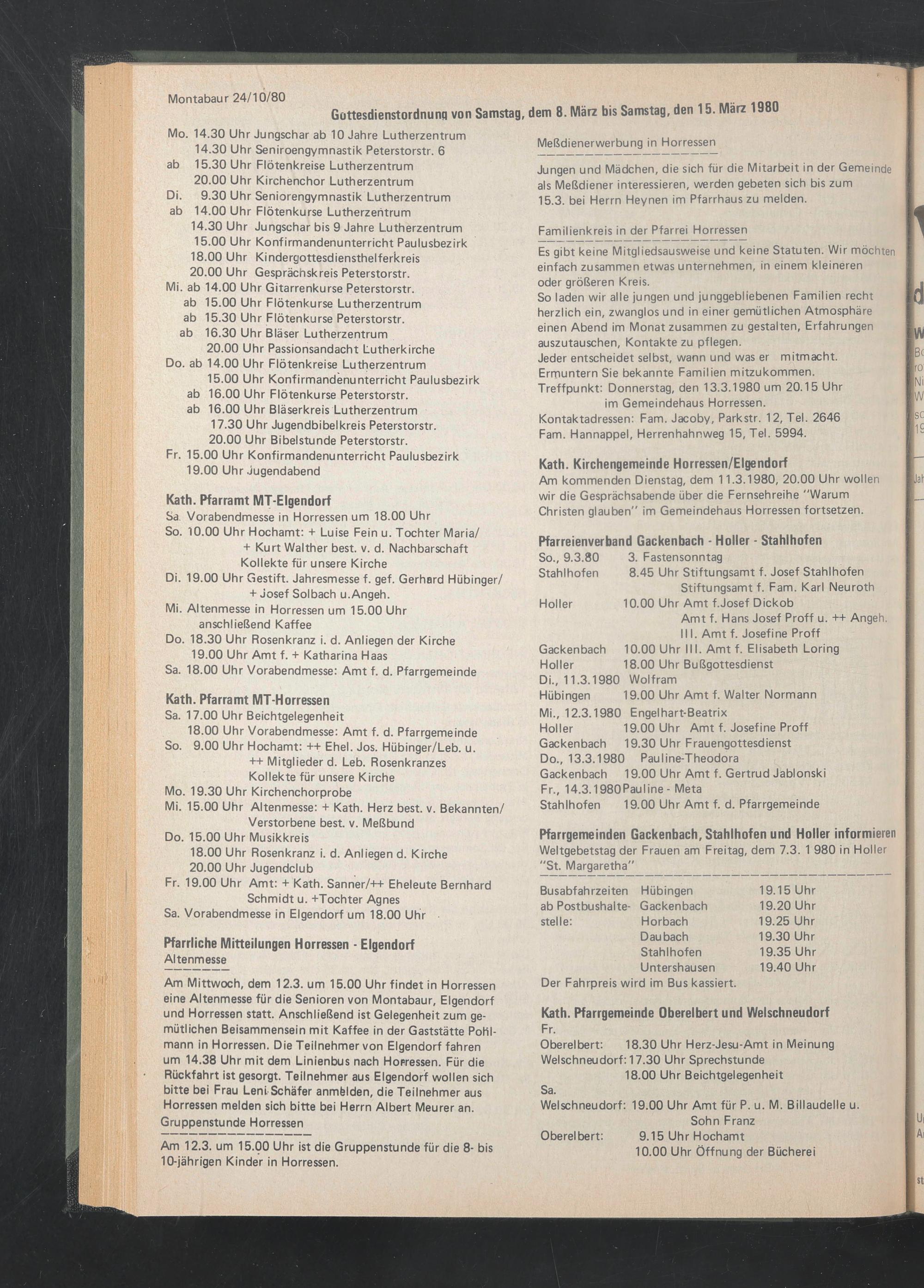 Gottesdienstordnung von Samstag, dem 8. März bis Samstag, den 15. März 1980