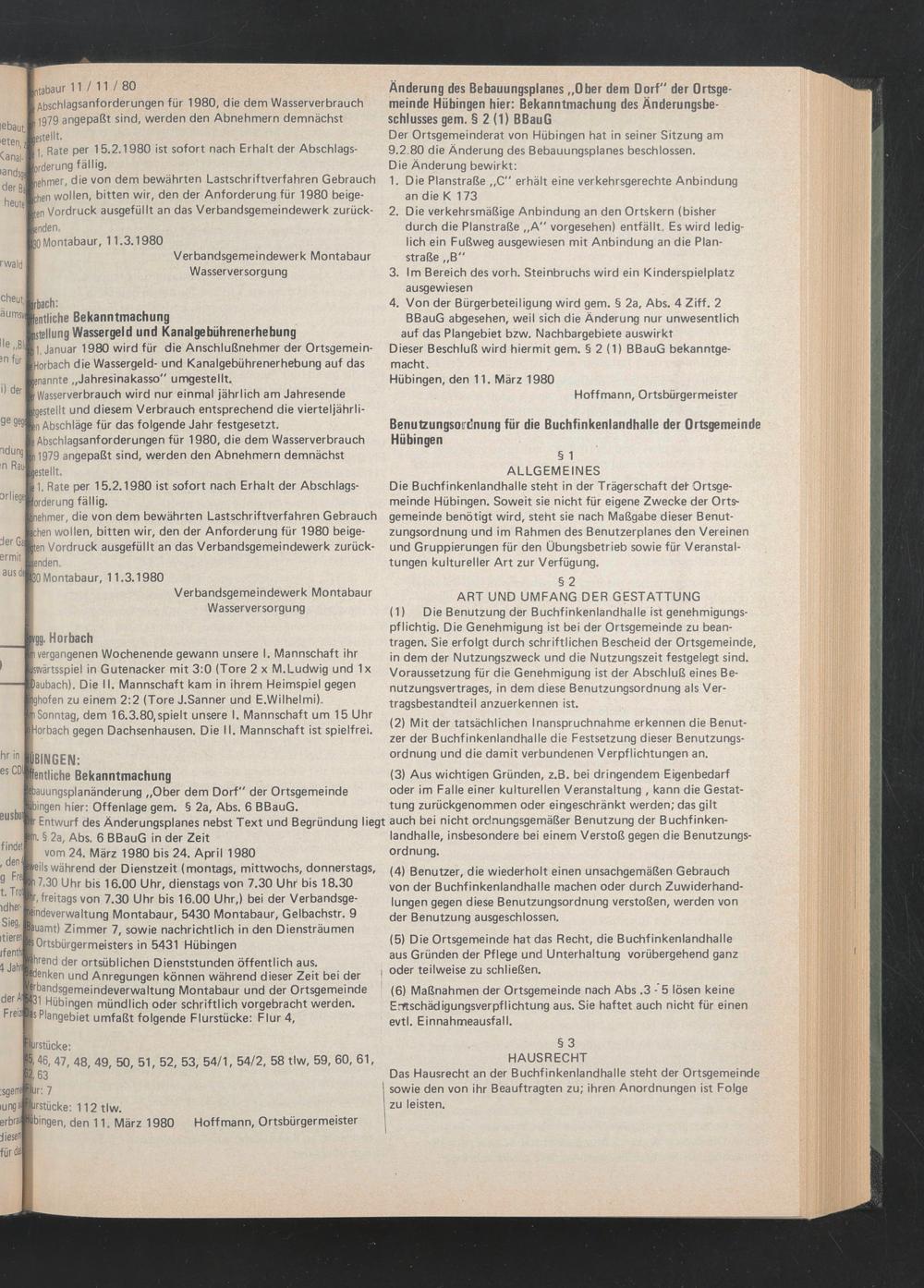 erbraupbingen, den 11. März 1980 Hoff mann, Ortsbürgermeister