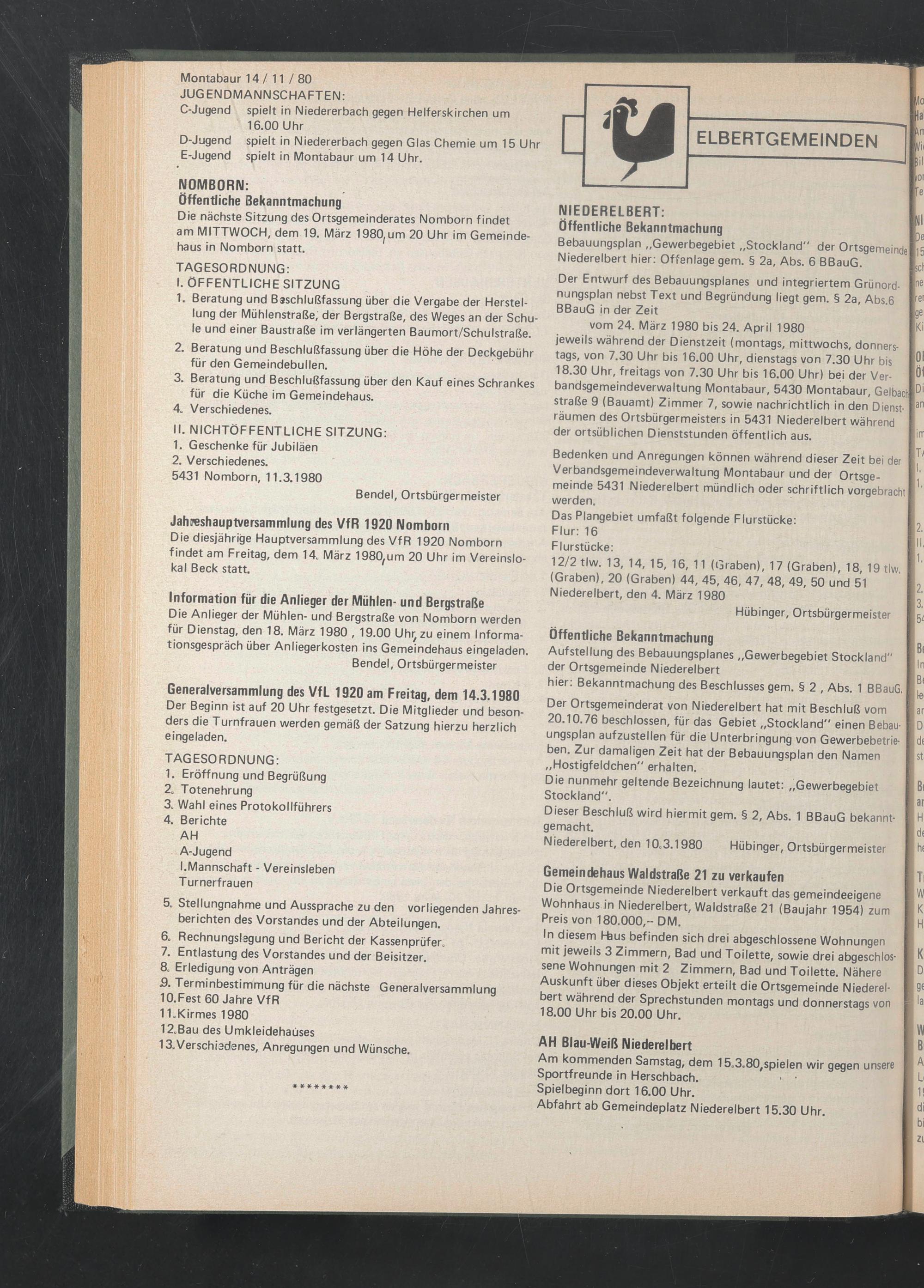 Niederelbert, den 10.3.1980 Hübinger, Ortsbürgermeister