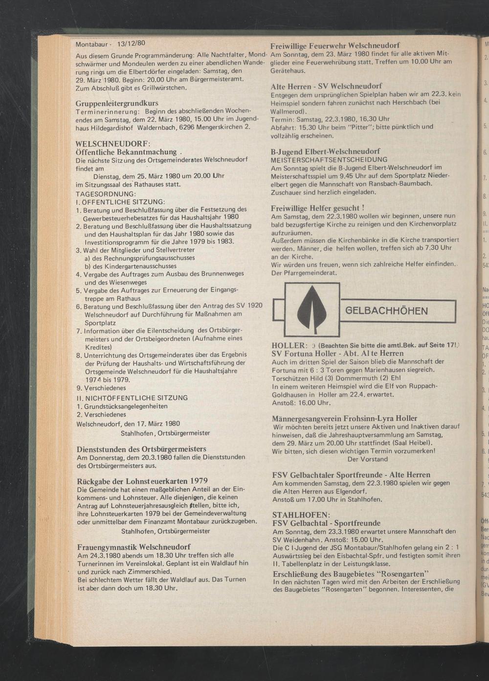 Dienststunden des Ortsbürgermeisters Am Donnerstag, dem 20.3.1980 fallen die Dienststunden des Ortsbürgermeisters aus.