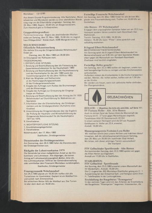 Freiwillige Feuerwehr Welschneudorf Am Sonntag, dem 23. März 1980 findet für alle aktiven Mitglieder eine Feuerwehrübung statt. Treffen um 10.00 Uhr am Gerätehaus.